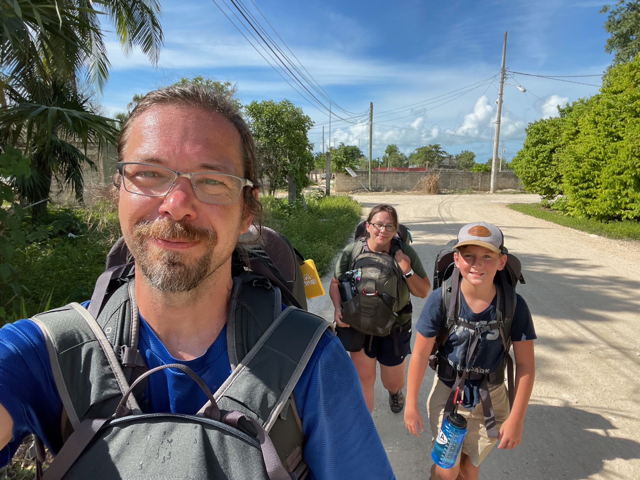 Both of the other ferries we’d ridden had taken credit cards, so at this time, we had no idea that our being low on cash was a problem. Unfortunately, the cell service is very spotty on the island, and the cashier couldn’t get a cell signal to run our credit card. So with 15 minutes until the last ferry left, we hiked 2 blocks back into town to the local bank to withdraw more money. By this time, I began to panic because we had already booked our bus tickets and a few nights in Valladolid. If we missed this ferry, we would also miss the once a day bus out of Chiquila for Valladolid too. While Brian talked to the cashier at the bank, Henry stood outside with me reassuring me that everything was going to be alright. As soon as Brian came out of the bank, we all jogged as fast as we could towards the ferry. Now, I have super short legs, and my pack is about 28 pounds of extra weight. Needless to say, me jogging with a full pack like this had to be comical to anyone watching us, although at the time, I found nothing funny about the situation. We were the last people they let on when we finally made it to the boat, but we did make it. As I sat down in my seat, I thanked God for getting us on board.