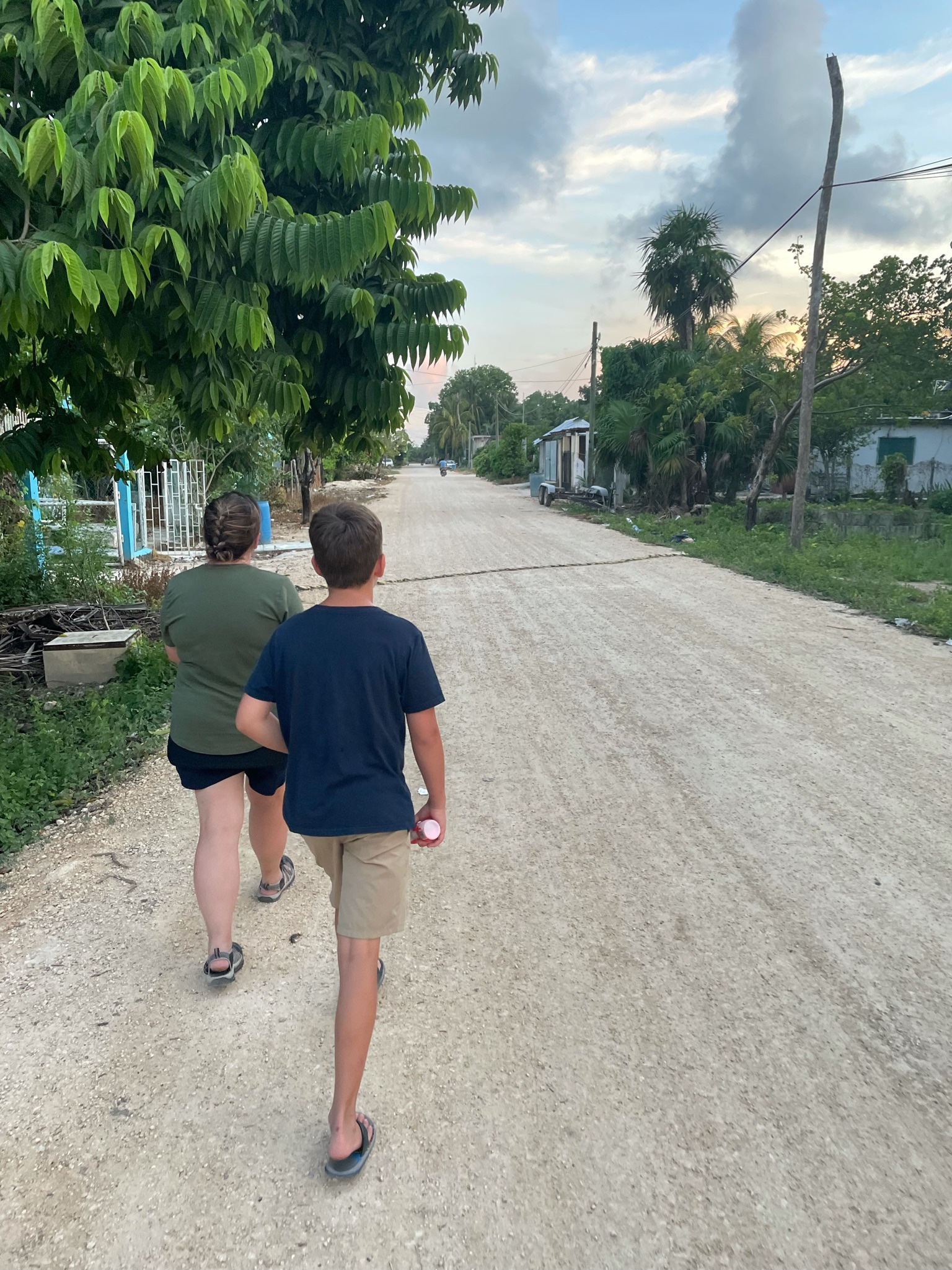 We had sidewalks the entire mile route, but sidewalks in Valladolid are much different than the sidewalks I’m used to. The steps were uneven, each home or business had a steep slope to get into their area, and it felt like every single home or business demanded a different height sidewalk. It felt much more like a hike down a rocky trail than a stroll down a city street; you had to watch your footing the entire distance. Also, many of the homes/businesses use smooth or glossy tiles instead of concrete, and those become very slick when wet. The walk wasn’t bad, but in the dark and rain, it felt a little treacherous.