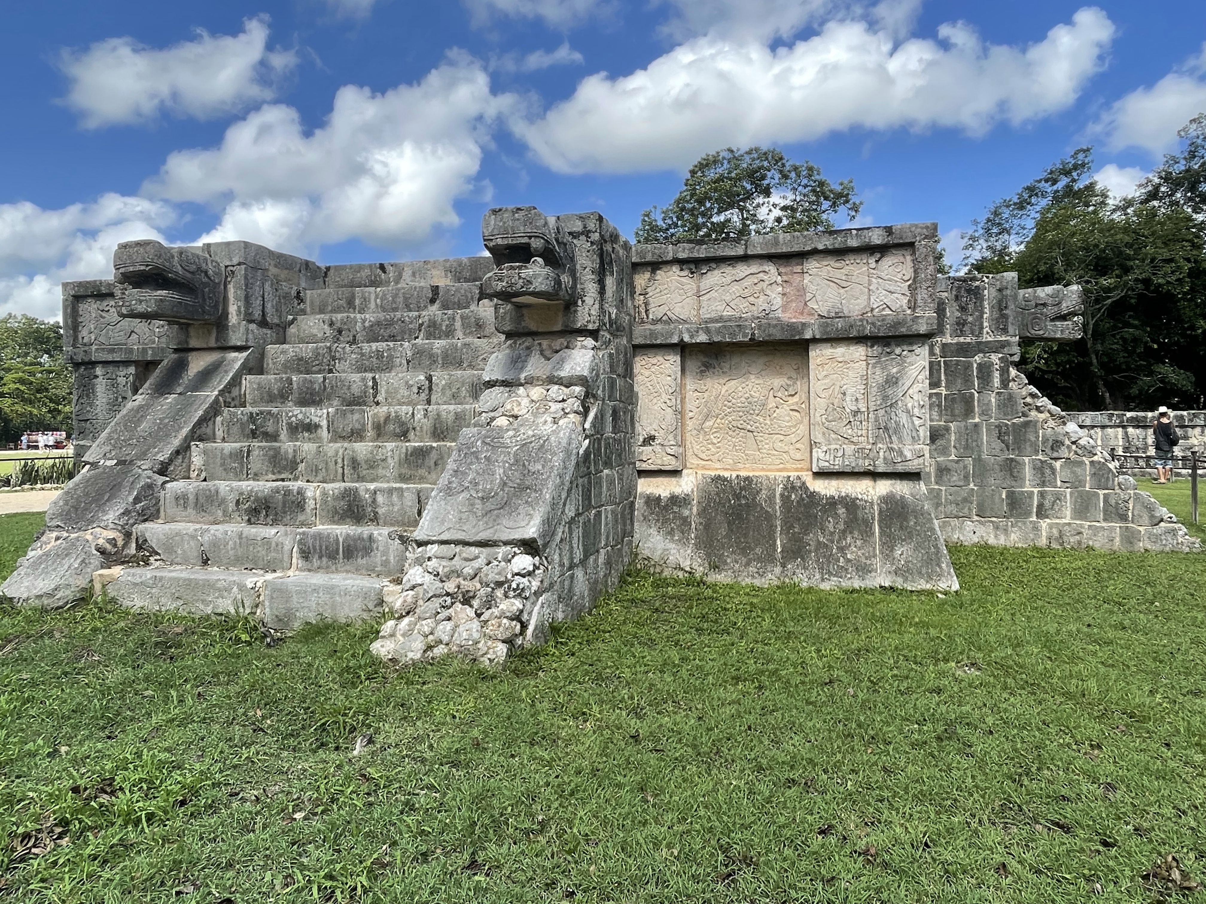 A cenote is a freshwater filled sinkhole and there are thousands of them in the Yucatán peninsula. Some of them are in caves, some are partially open like Ik-Kil, the cenote we visited near Chichen Itza, and some are completely open where the caves that were once above them collapsed. Some of the cenotes served religious purposes in the Mayan days, and gold, silver, jewels, and human remains have been found in the bottom of many (the Mayans believed in human sacrifices to appease their Gods).