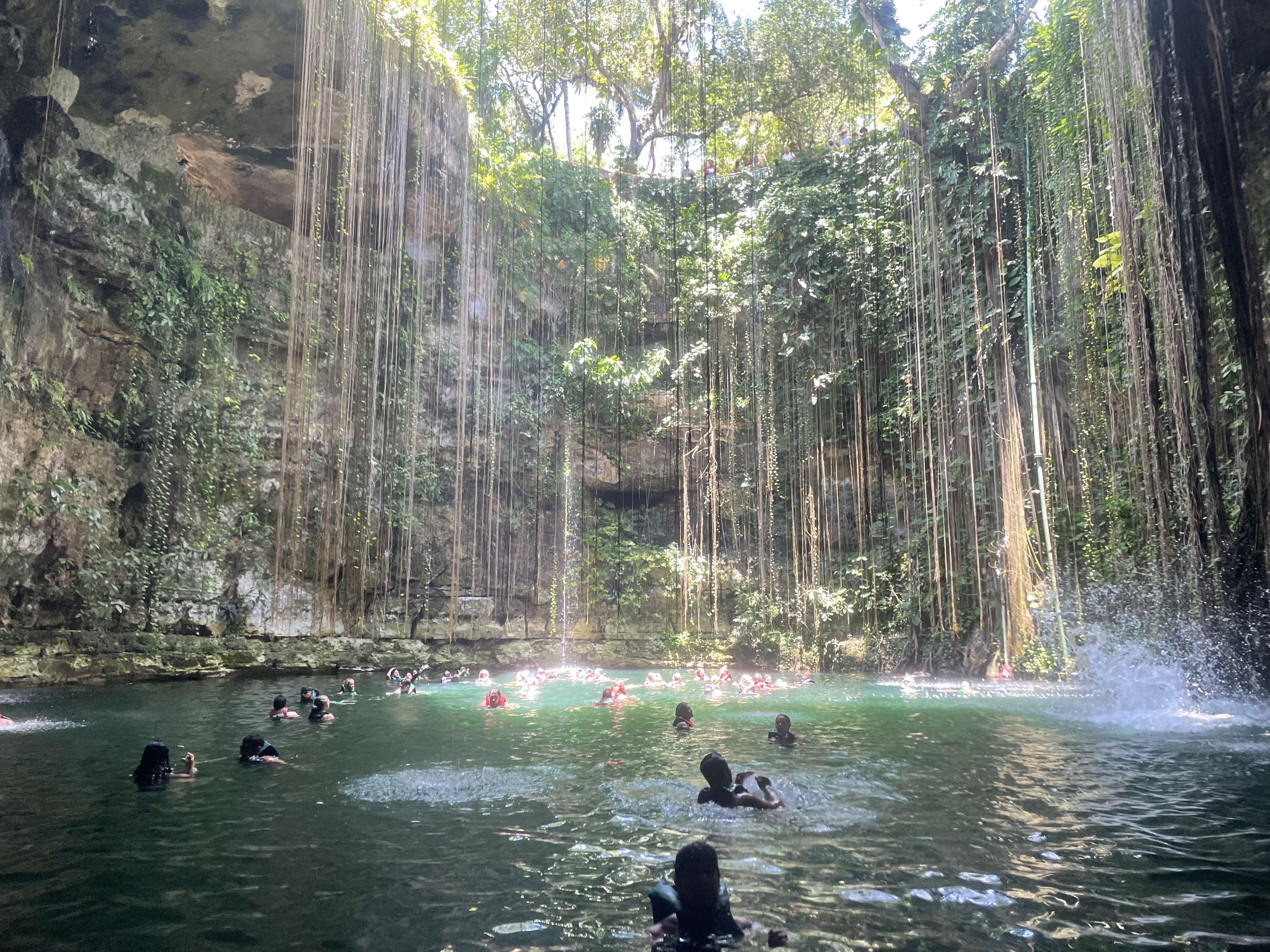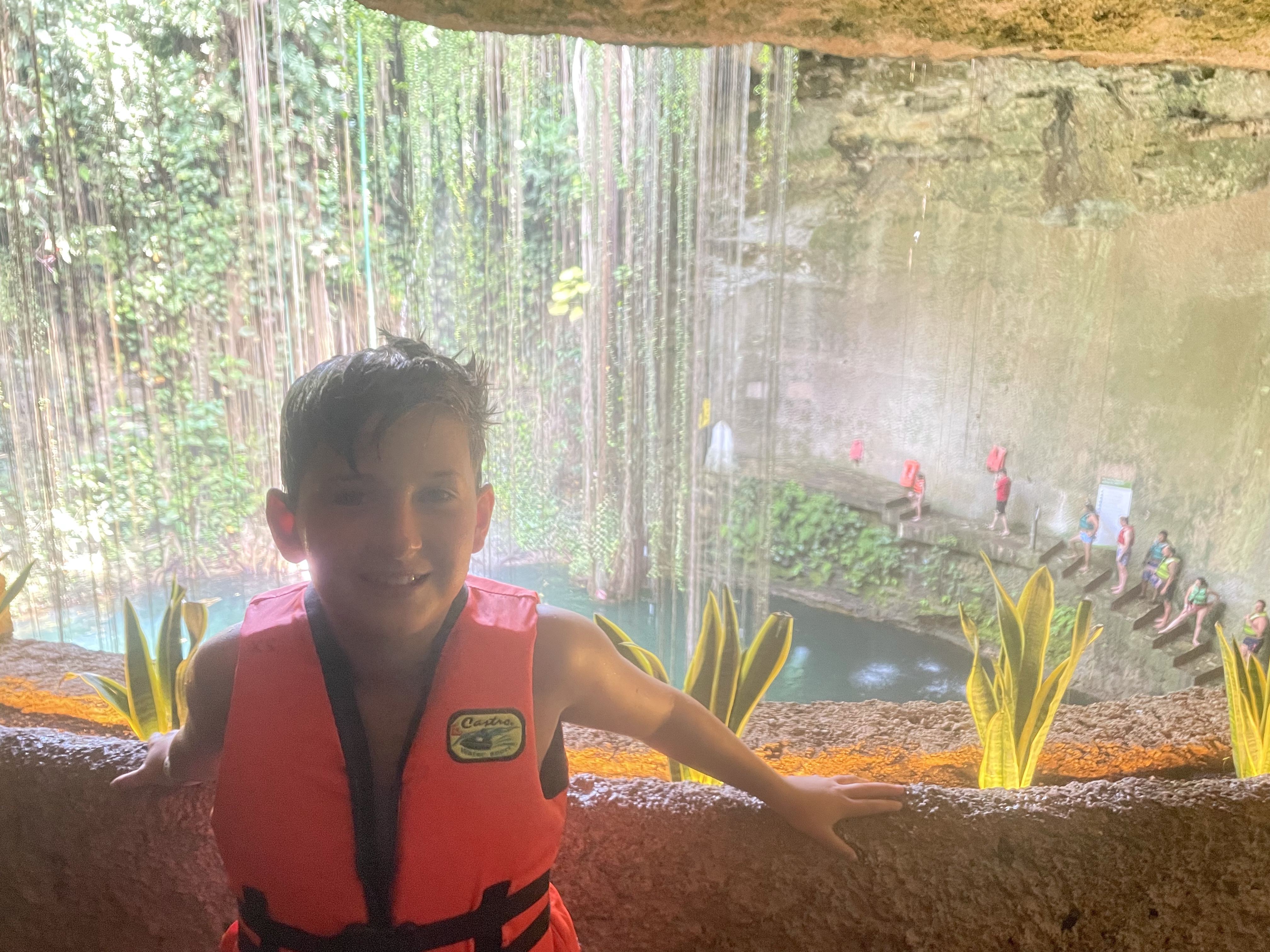Saturday we toured the ruins and spent the afternoon at the Ik-kil cenote, and it was worth the wait. Henry’s favorite thing about the cenote was jumping in from the platform; he probably jumped in 50 times. The cenote was absolutely beautiful, and we swam with the fish in the freezing water for a few hours.
