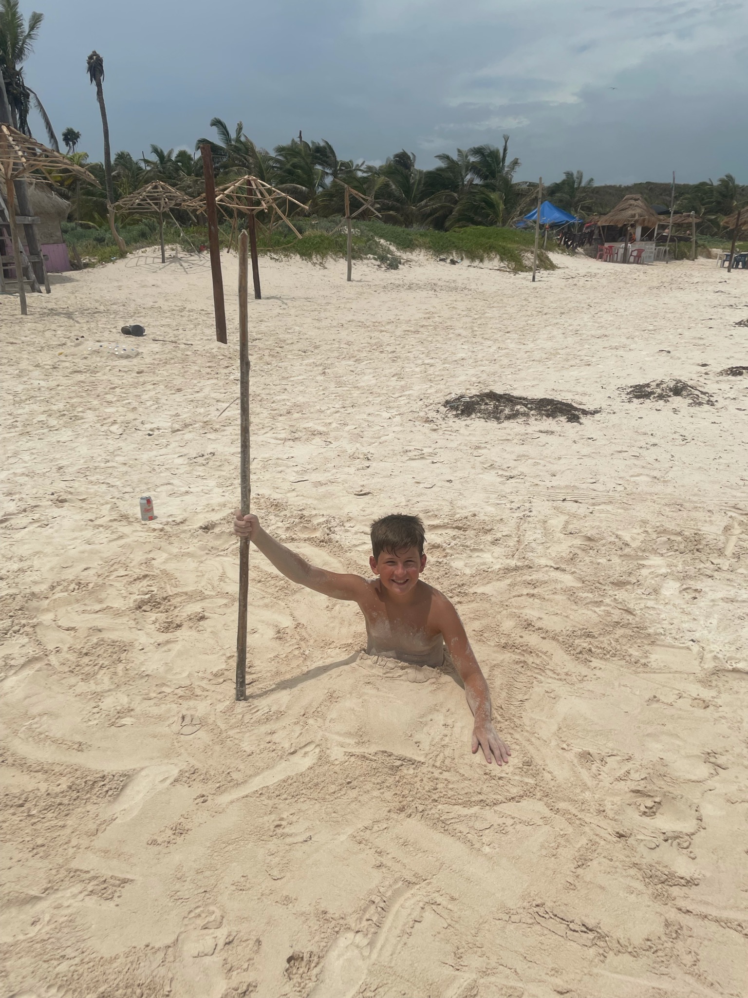 On Monday, we rented bikes from a nearby shop and rode a few miles to the beach area. The beach was open, but the rough waters had continued to churn up the seaweed and the shore was a little gross. We played in the sand and waves for a few hours under the scenic cliffs of the Tulum ruins, and I could imagine how beautiful the beach must have been normally. The next morning we walked out of our hotel to find Henry’s rented bike had been stolen. Someone had cut the chain off and taken the bike. Henry had been hoping to ride to breakfast, and while I hated that the bike was stolen, my rear end was relieved to not have to ride bikes anymore.