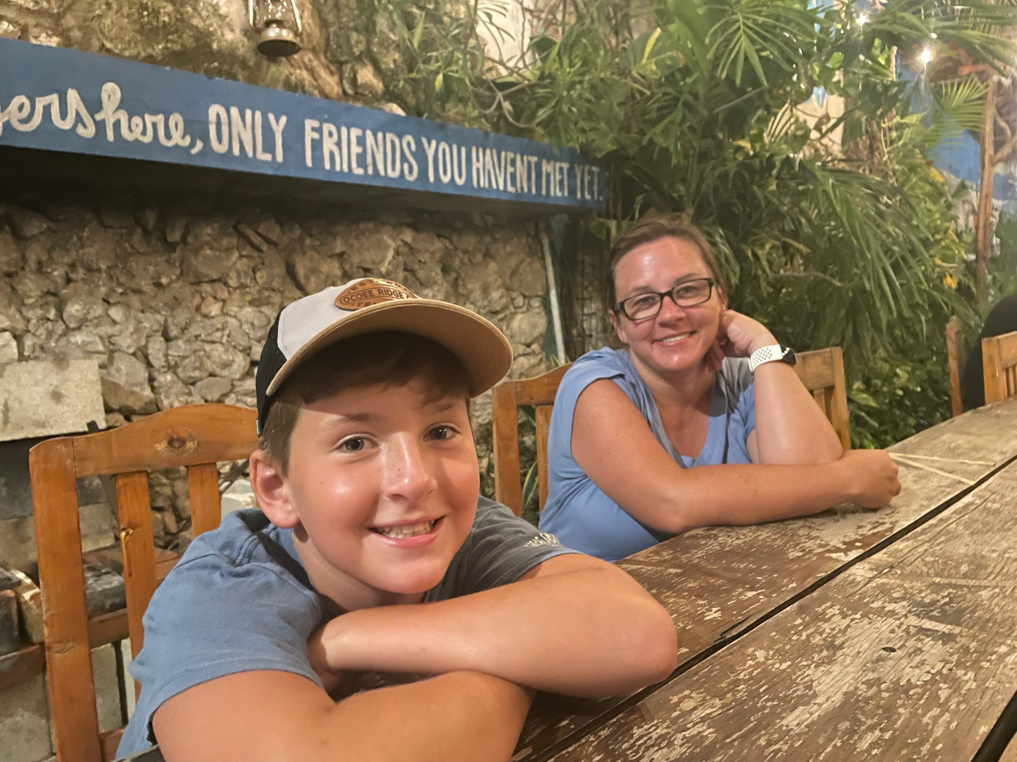 Our final two nights in Tulum, per Henry’s request, we stayed at Mama’s Home, a small hostel where Brian had stayed in January. We had a spacious private room on the second floor. We enjoyed our freshly prepared breakfast each morning with the other travelers and we hung out each afternoon in the hostel courtyard hammocks until we went to dinner as a group. Henry was our social butterfly making friends in the kitchen as he prepared snacks for us each day.