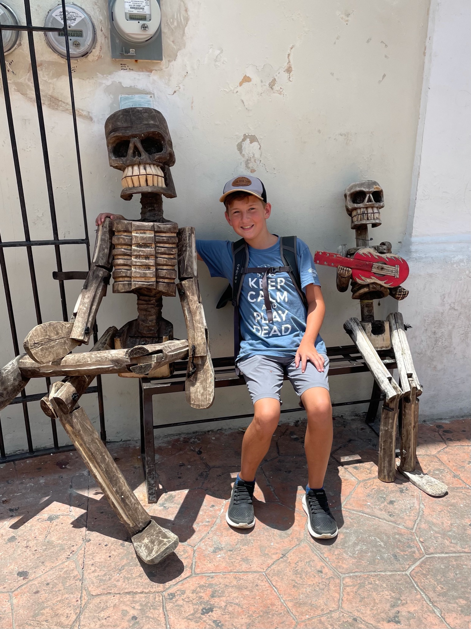 On our second day, we decided to head to the beach. On the way to the marina, the atmosphere of the town changed as the businesses in the high-traffic areas targeted the tourists coming on/off of the island. We’d gotten used to the laid back feel of the downtown area, but this marina area was much different with rhythmic music blaring, large crowds moving through the town, and souvenir shops at every turn. We also began to notice big shifts in prices. Three tacos in the downtown area would cost you about $3; in the marina area, the same plate of tacos was about $12. Near the beach, we met Alex, a local tour guide, who spent about half of an hour talking to us about Playa Casitas, the Mayan Indians, and the history of the island. Afterwards, we swam in the shallow water by the shore where Henry was grateful he had brought along his goggles so he could watch the thousands of little fish swimming among the rocks.