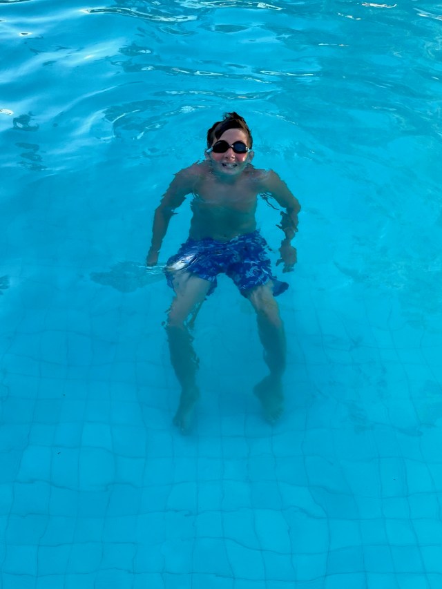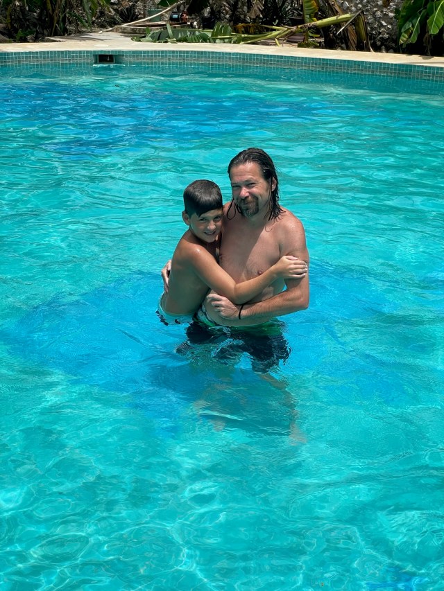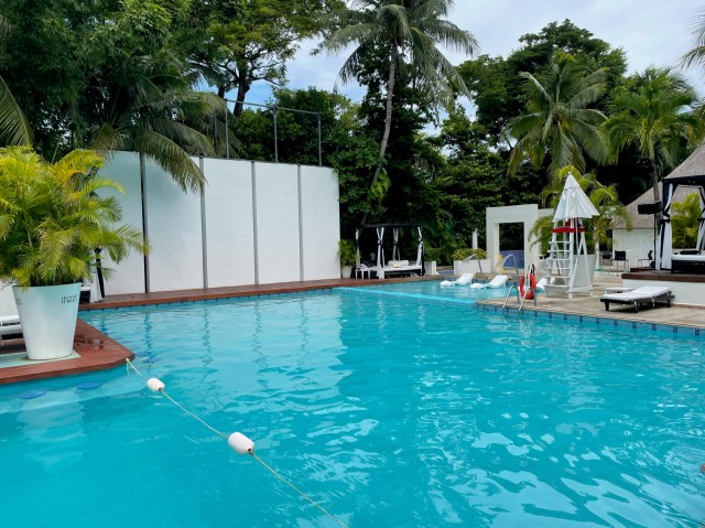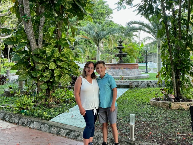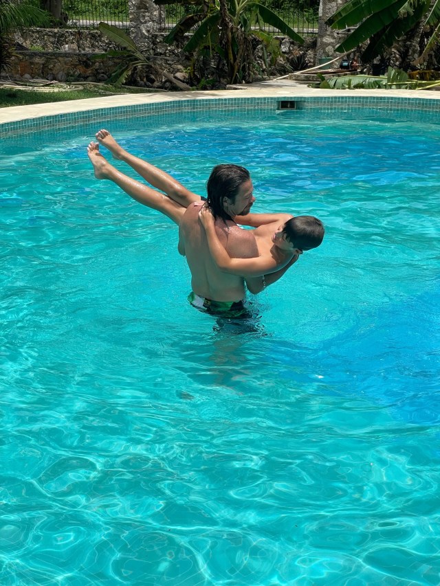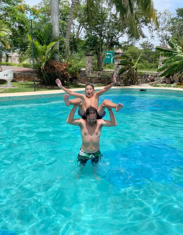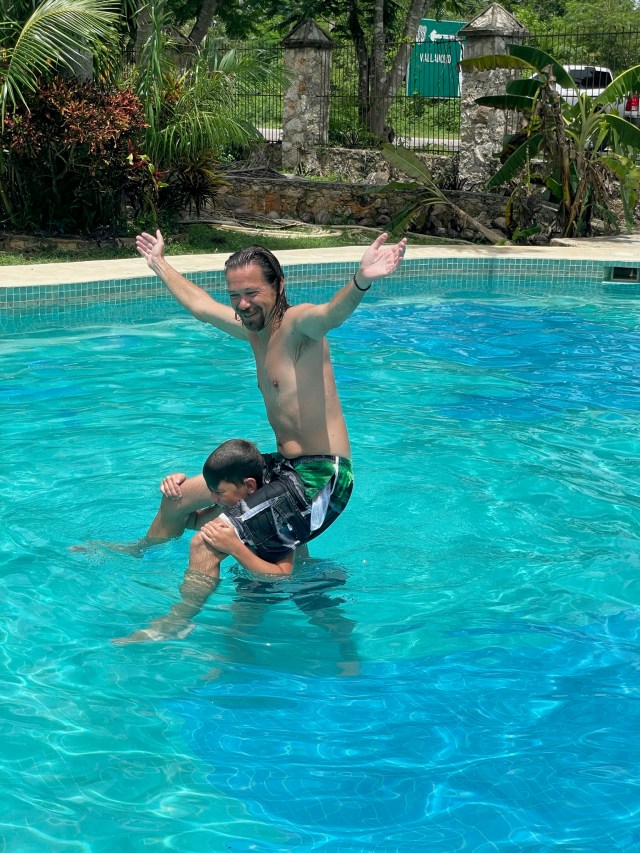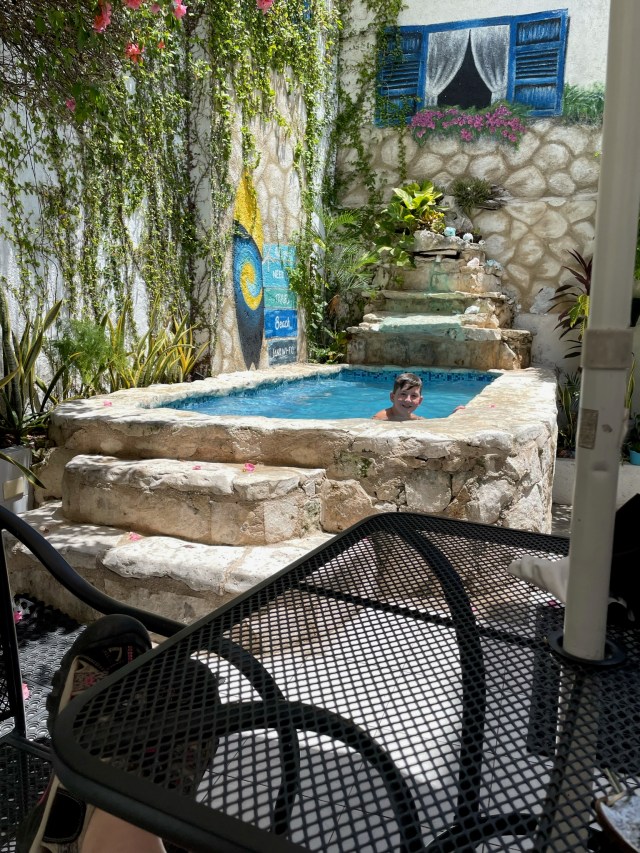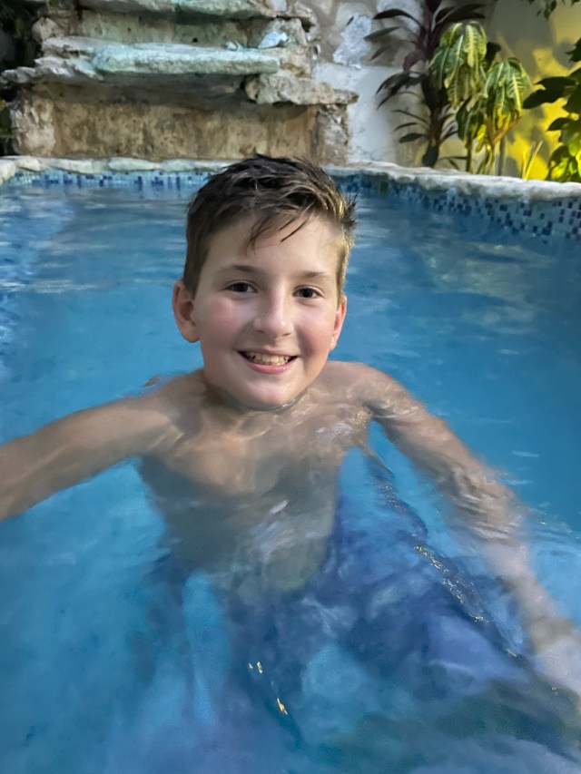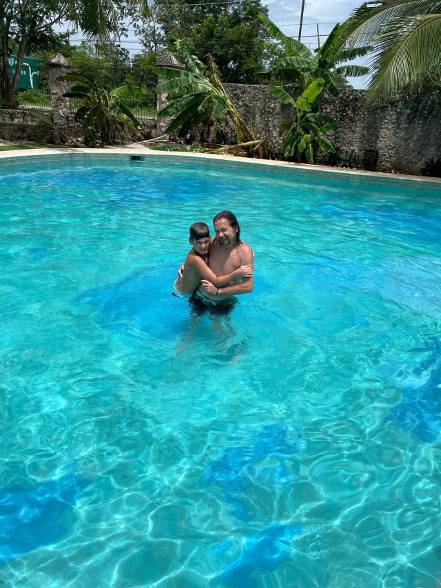 Enjoying the pool at Hacienda Sanchez in Valladolid, Mexico