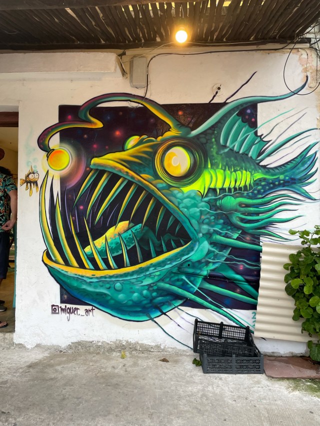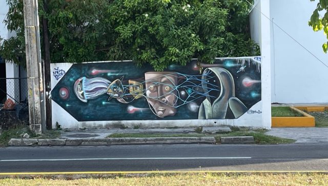 Street art at Roots, an Italian restaurant in Holbox, Mexico