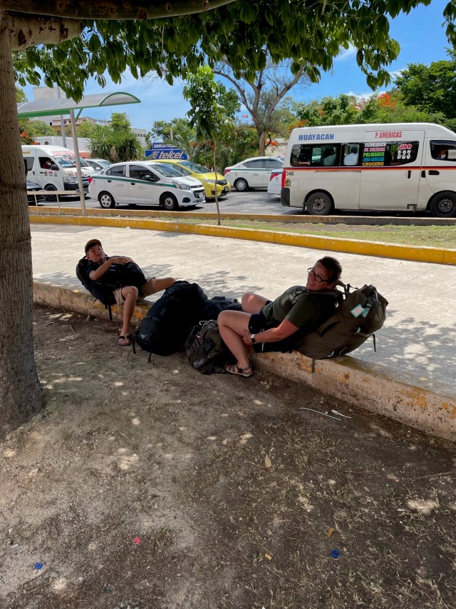 Waiting for a collectivo outside of Cenote Ik-Kil, Valladolid, Mexico