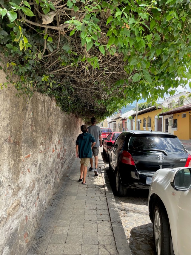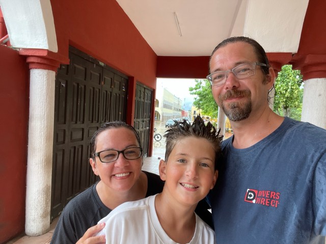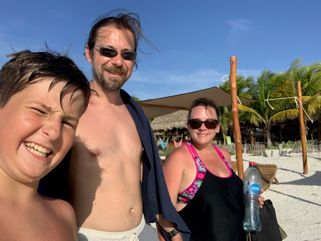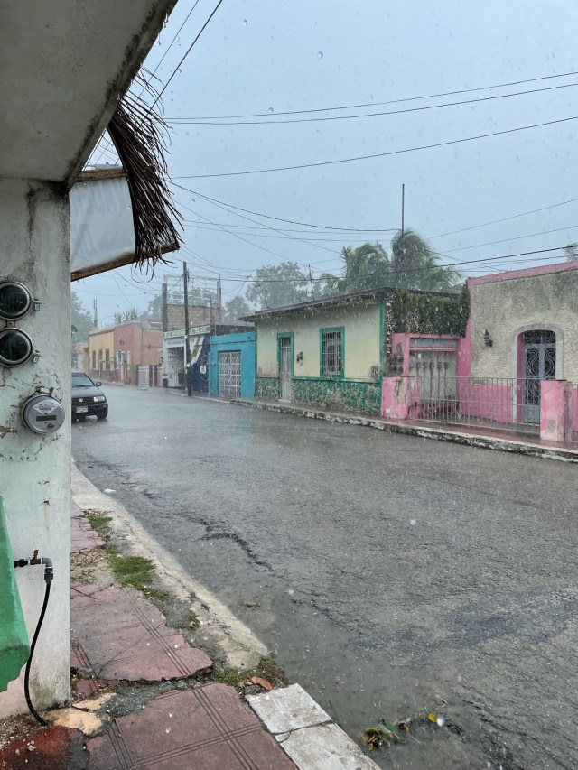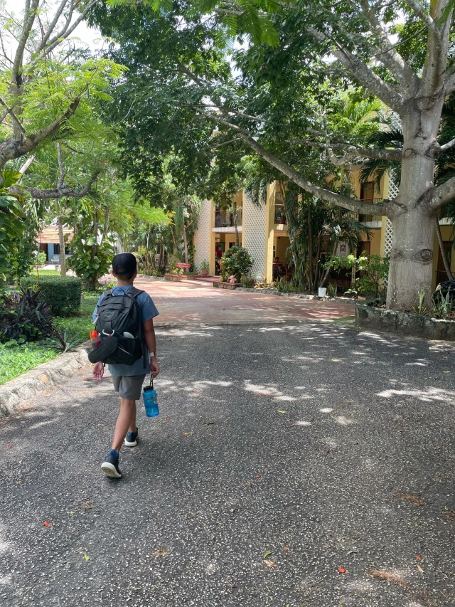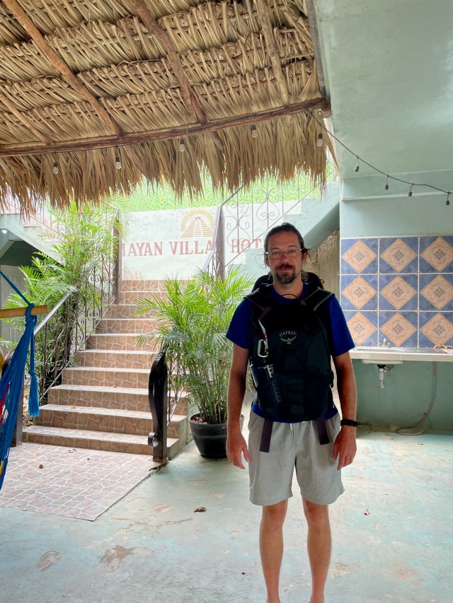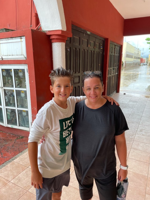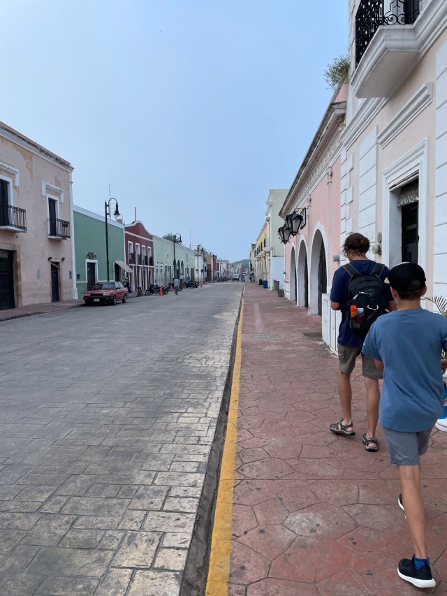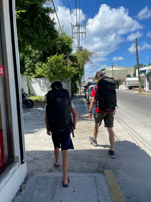 Walking from the bus stop to our hotel in Chiquilla, Mexico.