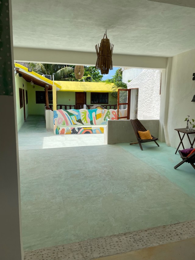 A common area outside our room at Marvin Suites in Holbox, Mexico.