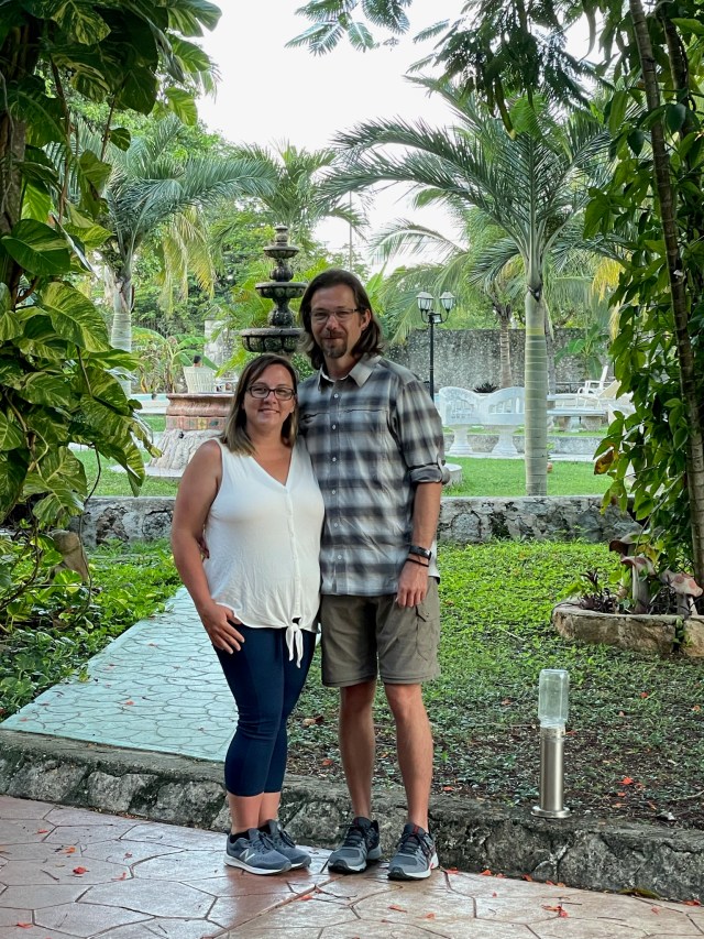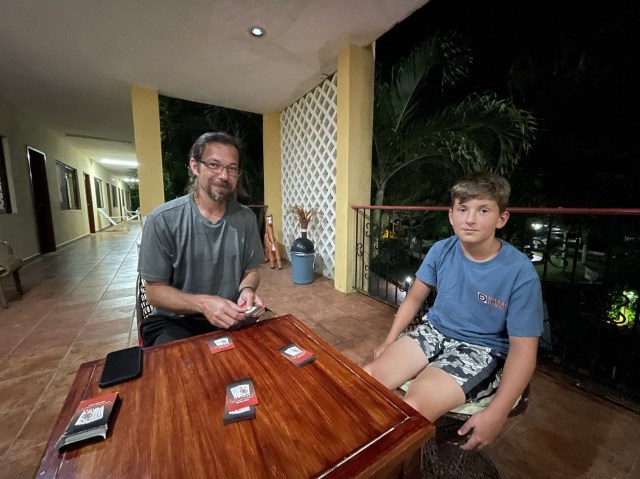 Playing Hearts at Hacienda Sanchez in Valladolid, Mexico