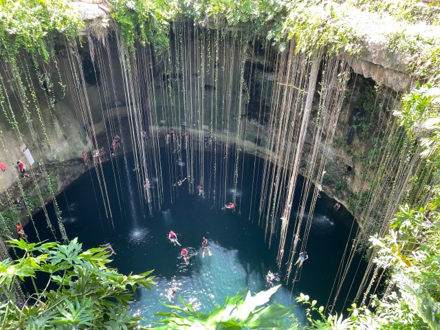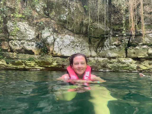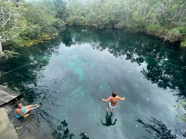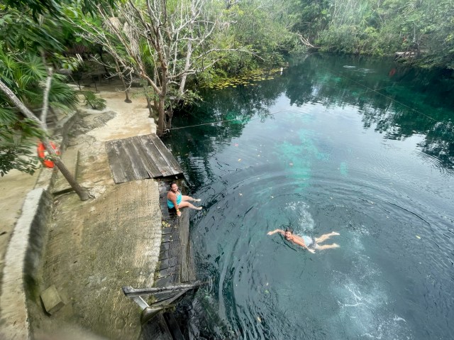 Swimming in Cenote Dorca at Casa Tortugas. Casa Tortugas was a group of cenotes just outside of Tulum, Mexico