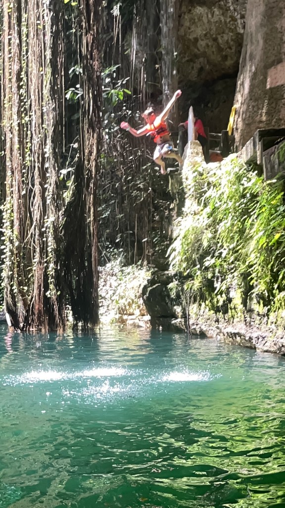 At Casa Tortuga, swinging by Cenote Dorca. Casa Tortuga is a group of cenotes located just outside of Tulum, Mexico.