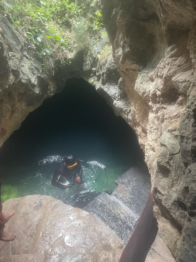 Coming out of Cenote Wisho in Casa Tortugas. Casa Tortugas is a group of cenotes located just outside of Tulum, Mexico.