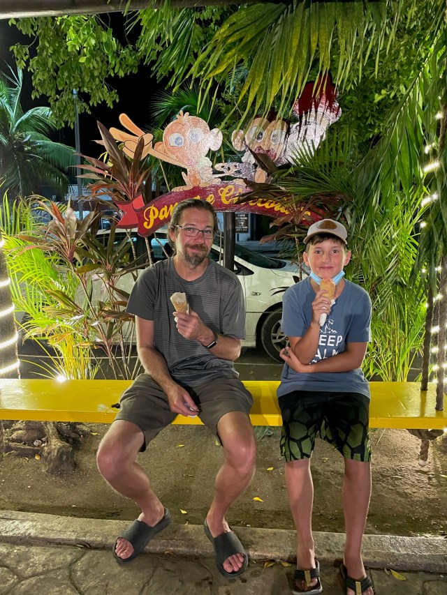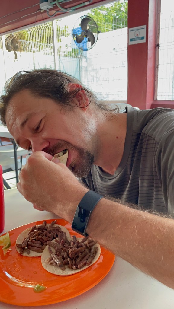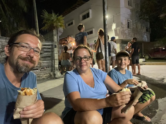 Eating burritos at a street vendor with Mama’s Home in Tulum, Mexico