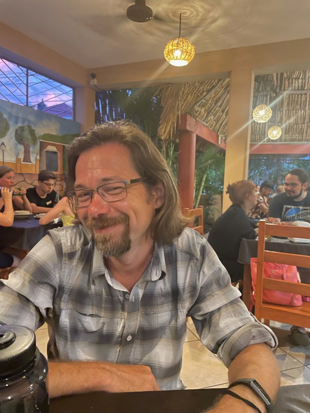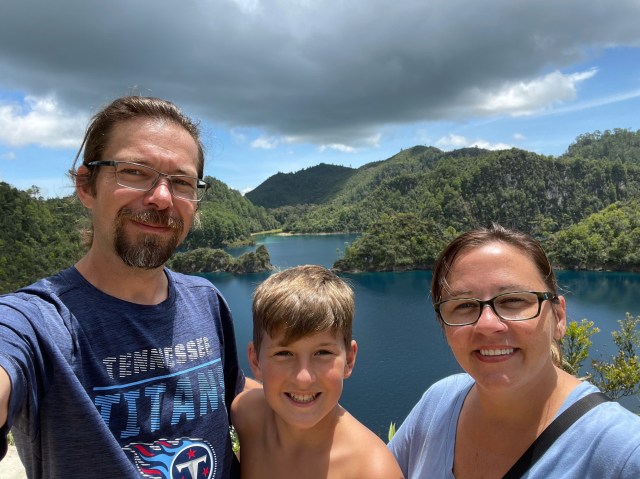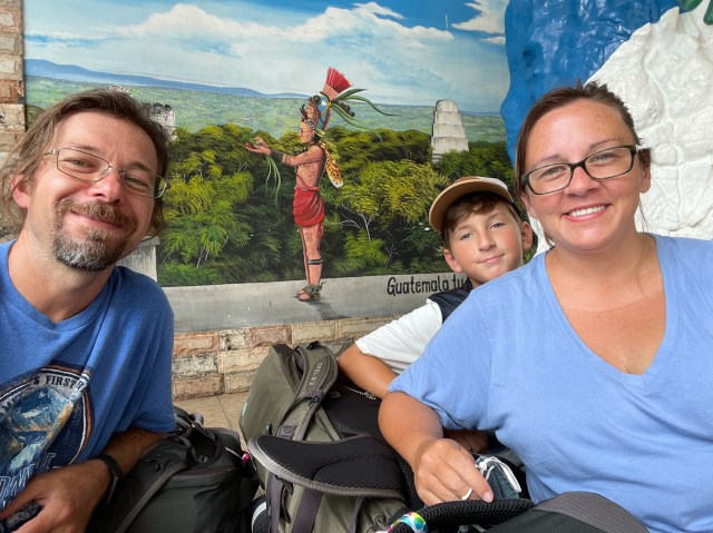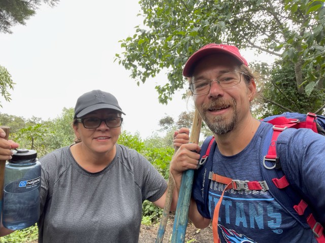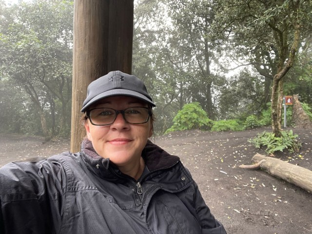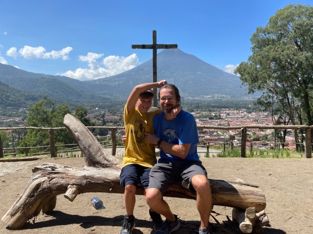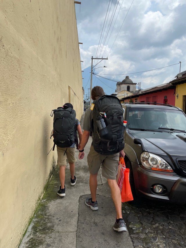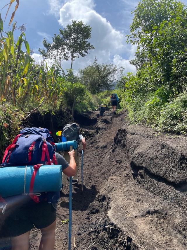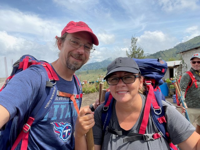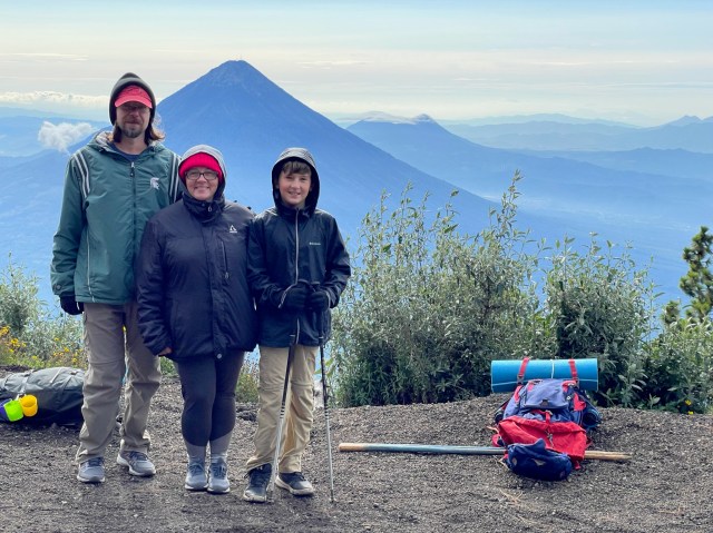 Still smiling as we hike up Volcan Acatenango, Guatemala
