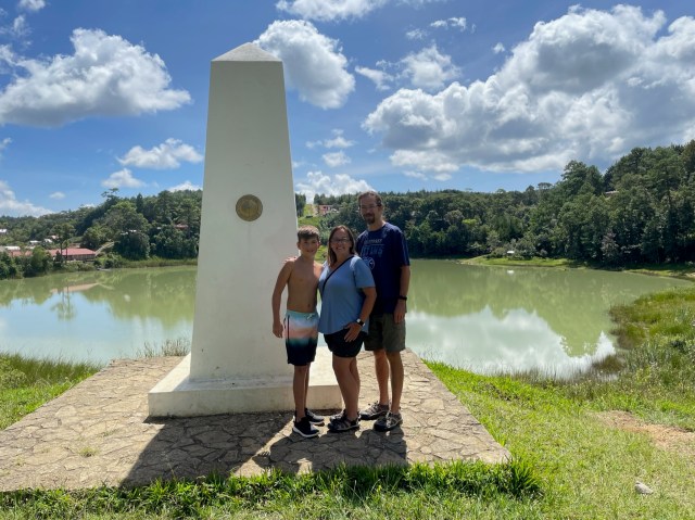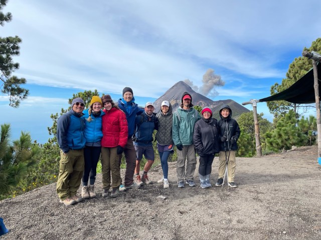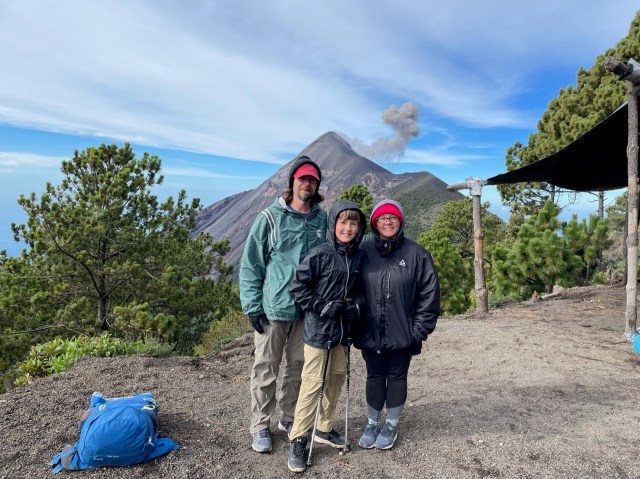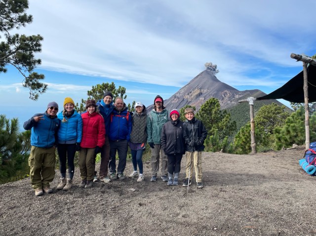Celebrating the hike at the base of of Volcan Acatenango, Guatemala