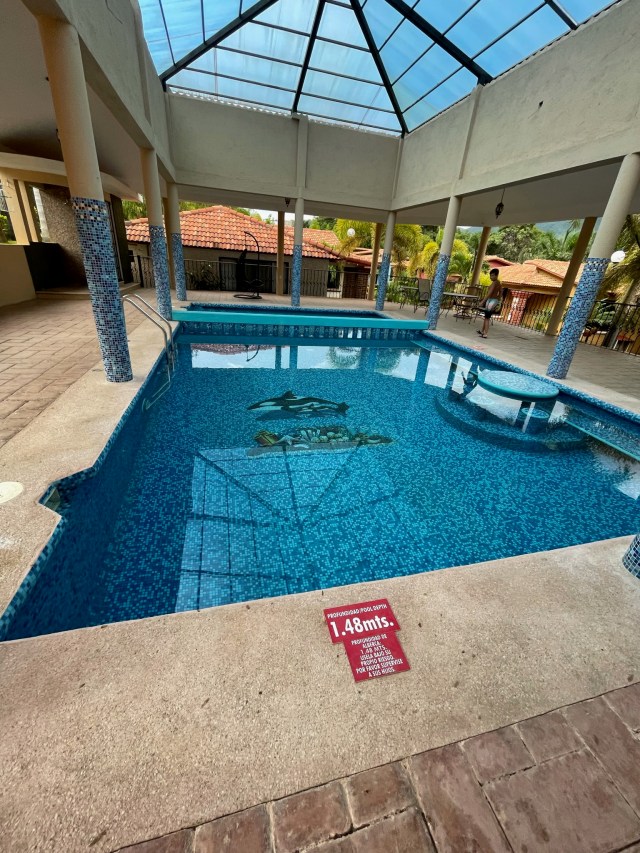 Enjoying the pool at Hacienda Sanchez, Valladolid, Mexico
