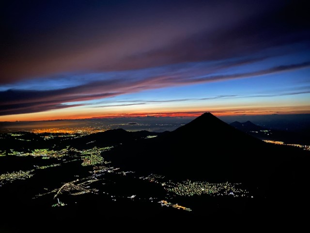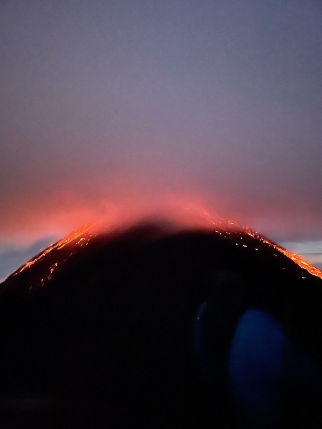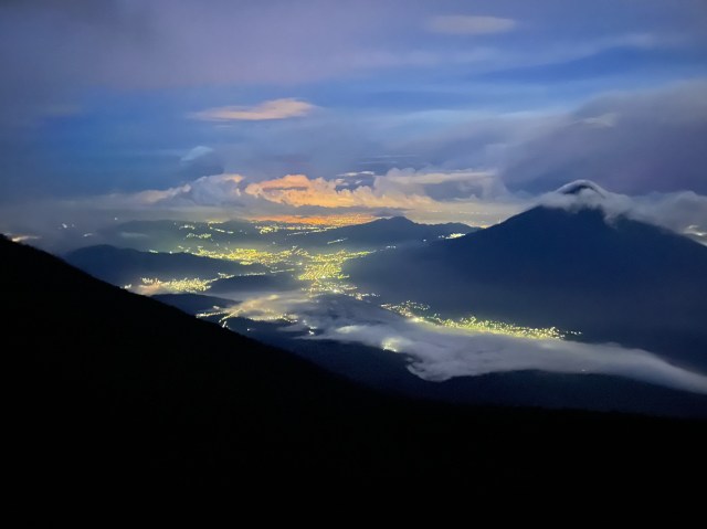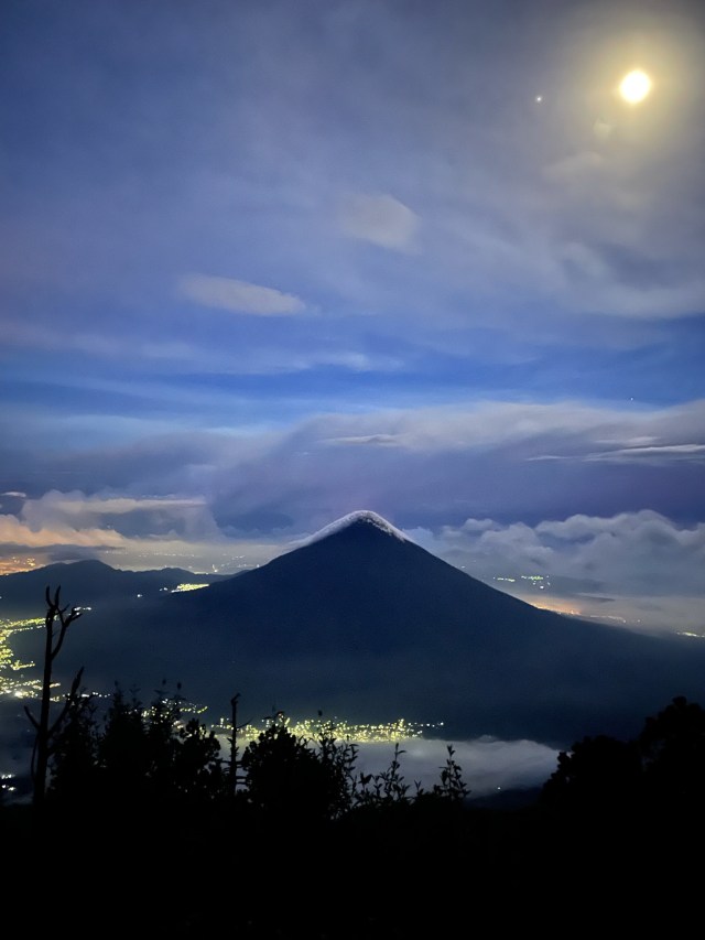 Moonlight on Volcan de Agua, from Volcan Acatenango, Guatemala