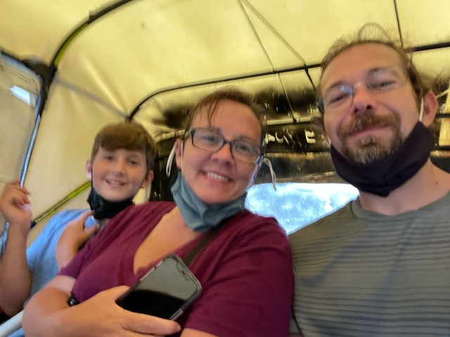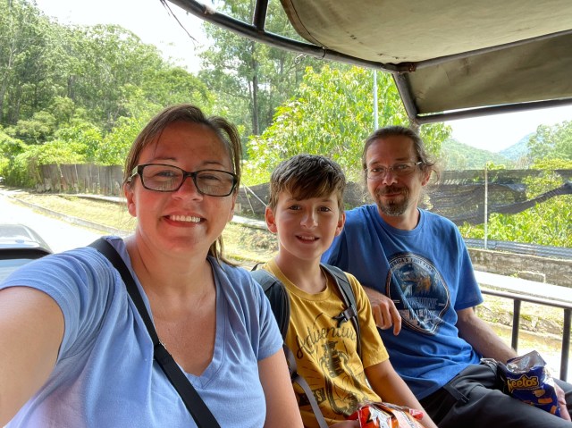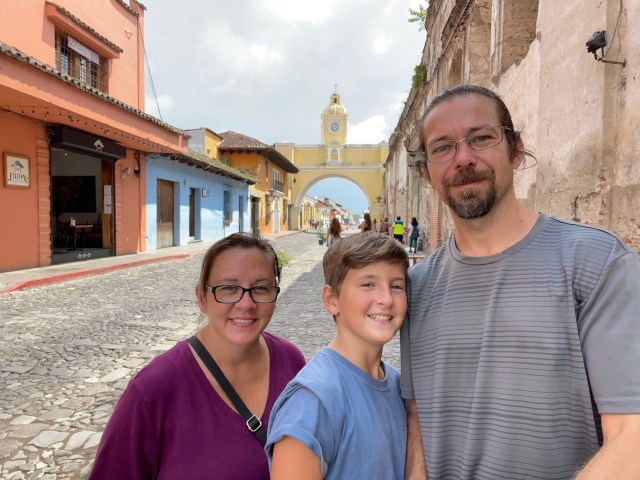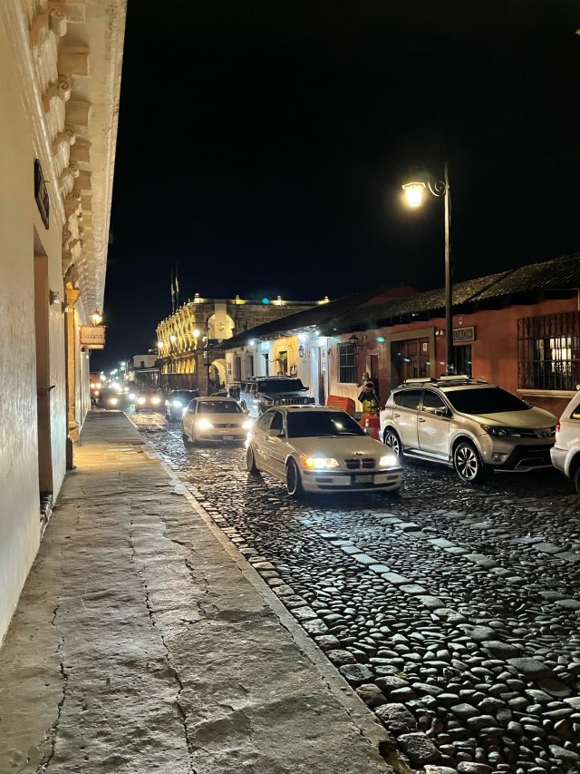 In a tuk-tuk (3-wheeled taxi), Antigua, Guatemala