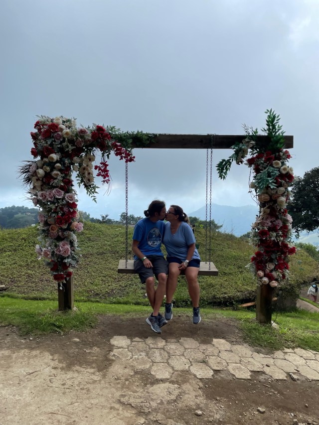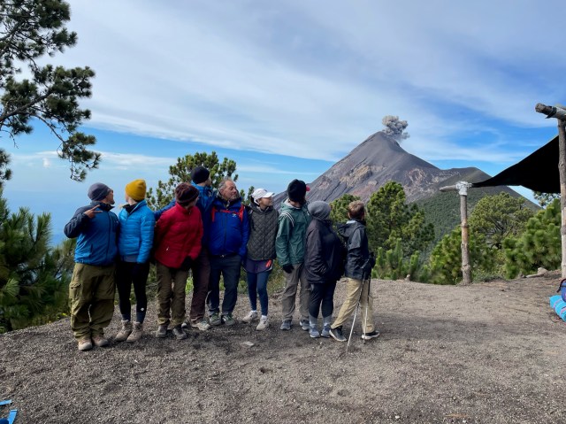 Celebrating the end of the hike down Volcan Acatenango, Guatemala