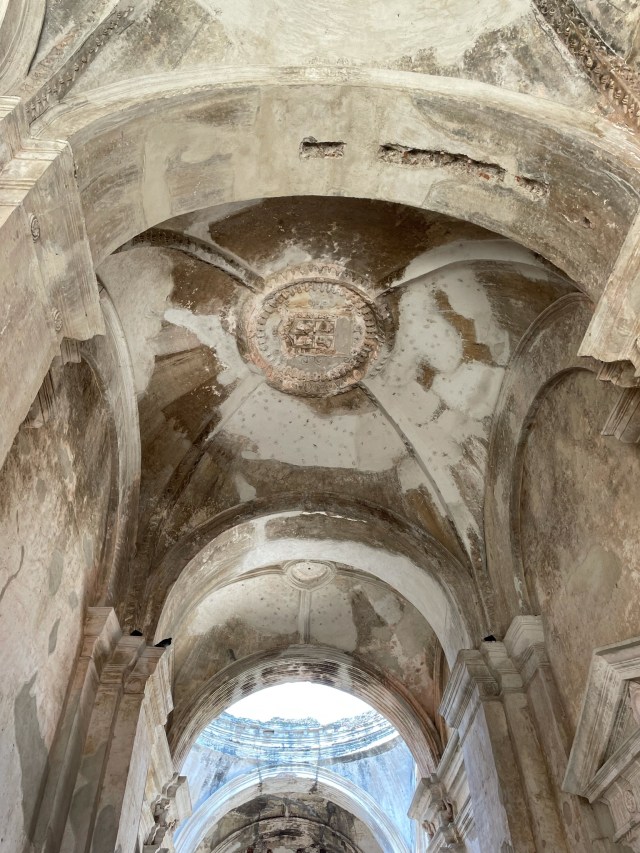 Looking up to Iglesia de San Cristobalito, San Cristobal de las Casas, Mexico